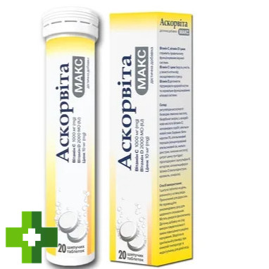 - Аскорвіта Макс забезпечує збалансований комплекс корисних елементів в одній таблетці.