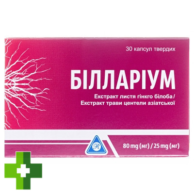 сухий стандартизований екстракт листя гінкго білоба (Ginkgo Biloba) − 80 мг (флавонові глікозиди ≥ 19,2 мг; терпенові лактони ≥ 4,8 мг);