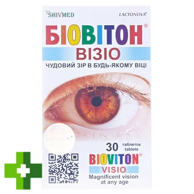 Біовітон Візіо - оригінальна комбінована формула, яка сприяє нормальному функціонуванню зорового апарату, запобігає розвитку дегенерації сітківки, глаукоми, уповільнює розвиток катаракти і зниження гостроти зору, пов'язаних з віковими змінами.