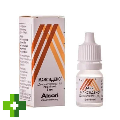 При застосуванні очних крапель, що розширюють зіниці (атропін та інші антихолінергічні речовини), внаслідок чого можливе підвищення внутрішньоочного тиску, одночасне застосування лікарського засобу МАКСИДЕКС® може призвести до додаткового підвищення внутрішньоочного тиску.