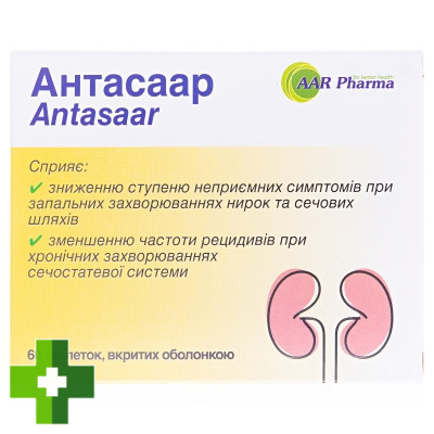 Добавка дієтична Антасаар може бути рекомендована в якості джерела біологічно активних речовин, сприяє поліпшенню функції нирок і сечостатевої системи, має м'які сечогінні властивості. Містить суміш стандартизованих по вмісту флавоноїдів рослинних екстрактів.