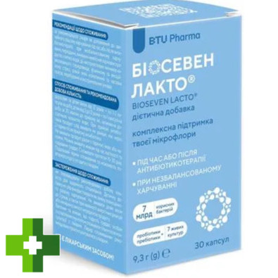 Наповнювач мікрокристалічна целюлоза, живі ліофілізовані молочнокислі бактерії (Lactobacillus acidophilus шт. LA 009 /14, Lactobacillus plantarum шт. 8Р-АЗ, Lactobacillus delbrueckii subsp. bulgaricus шт. 9702, Lactobacillus fermentum шт. 90-ТС, Lactobacillus rhamnosus шт. LR 006/14, Streptococcus thermophilus шт. ST 010/19, Bifidobacterium bifidum BFD), веганська капсула (глазуруючий агент гідроксипропіл-метилцелюлоза, желюючий агент геланова камедь), інулін, лактулоза.