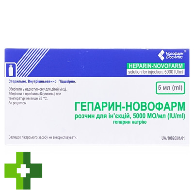 Гепарин Новофарм, р-н д/ін. 5000 МЕ/мл фл. 5 мл, №5