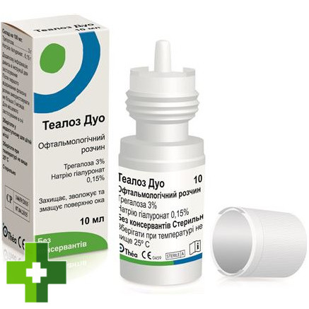 Теалоз Дуо - стерильний гіпотонічний офтальмологічний розчин з нейтральним pH для місцевого застосування для досягнення миттєвого комфорту очей, що зберігається протягом усього дня.