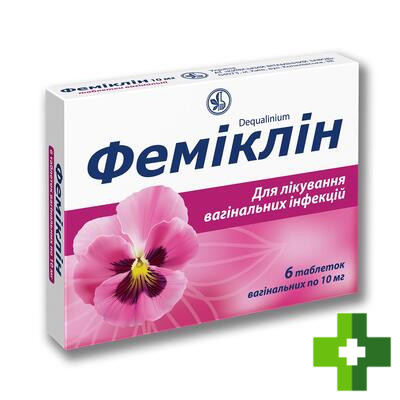 Феміклін містить деквалінію хлорид - четвертинну амонієву сполуку із широким антимікробним спектром дії проти різних грампозитивних та грамнегативних бактерій, грибів та найпростіших одноклітинних організмів (Trichomonas vaginalis). Було встановлено активність деквалінію хлориду in vitro проти нижчезазначених значимих для ділянки піхви мікроорганізмів. Цю активність виражено як мінімальну інгібуючу концентрацію (МІК).