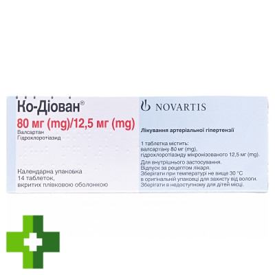 Ко-диован, табл. по 80 мг + 12,5 мг, №14