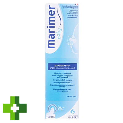 Спрей назальний ізотонічний МАРИМЕР бебі® - натуральний продукт, який є фізіологічним розчином морської води з мікродифузною системою впорскування. Від природи збагачений мінеральними солями та морськими мікроелементами, спрей назальний ізотонічний МАРИМЕР бебі® рекомендовано для новонароджених, немовлят та дітей молодшого віку для щоденного очищення носових ходів та зволоження слизової оболонки носа при сухості. Мікродифузна система впорскування в спреї назальному ізотонічному МАРИМЕР бебі® полегшує промивання носових ходів. Спеціальна захисна насадка сприяє безпечному застосуванню спрею новонародженим. Спрей назальний ізотонічний МАРИМЕР бебі® можна застосовувати у будь-якому положенні тіла. Належна гігієна носа допомагає захищати слизові оболонки від несприятливих факторів зовнішнього середовища (холодні погодні умови, алергени, сухе або забруднене повітря тощо) та забезпечує нормальне дихання носом. Немовлята у віці до 6 місяців дихають тільки через ніс.