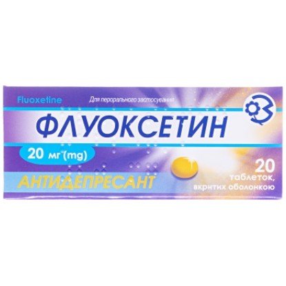 Фармакокінетика. Всмоктується з травного тракту. Слабко метаболізується при першому проходженні через печінку. Приймання їжі не впливає не ступінь всмоктування, хоча може уповільнити його швидкість. Максимальна концентрація у плазмі крові досягається через 6–8 годин. Рівноважна концентрація у плазмі крові досягається тільки після безперервного приймання протягом кількох тижнів. Зв’язування з білками плазми крові – 94,5 %. Легко проникає через гематоенцефалічний бар’єр. Метаболізується у печінці шляхом деметилювання з утворенням основного активного метаболіту – норфлуоксетину. Період напіввиведення флуоксетину становить 2–3 дні, норфлуоксетину – 7–9 днів. Виводиться нирками (80 %) і через кишечник – приблизно 15 %.