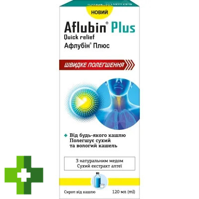 Афлубін Плюс, швидке полегшення сироп від кашлю по 120 мл у флак. з мірн. стак.