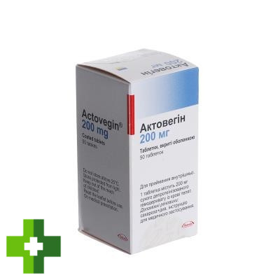 діюча речовина: 1 таблетка містить: депротеїнізованого гемодеривату із крові телят у вигляді Актовегіну концентрату, 200 мг сухої маси;