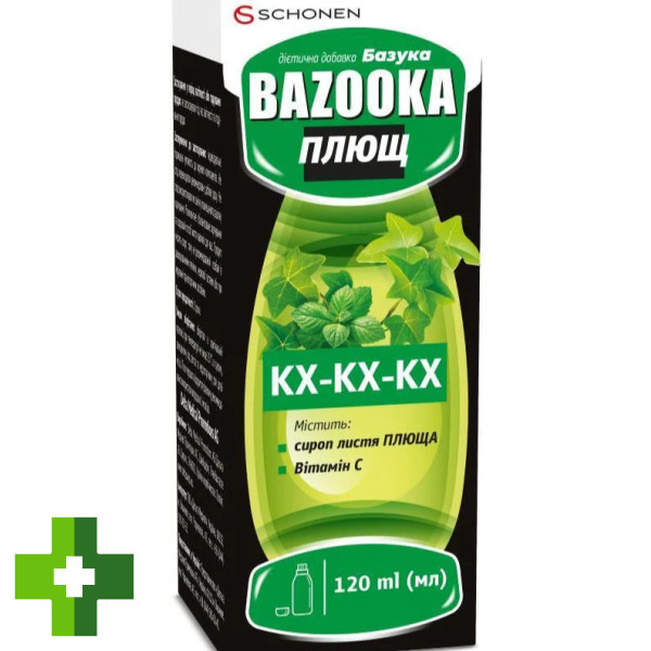 Не є лікарським засобом. Дієтична добавка БАЗУКА ПЛЮЩ (еліксир)/BAZOOKA IVY (elixir). З цукром. Вміст спирту 5 %.
