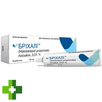 У вiдкритому рандомiзованому фармакокiнетичному дослiдженнi 23 пацiєнти вiком 18 рокiв i старше з бляшковим псорiазом вiд помiрного до тяжкого ступеня тяжкостi застосовували приблизно 7 грамiв лосьйону БРIХАЛI™ iз середнiм значениям ППТ 27,7 ± 11,3% один раз на добу протягом 28 днiв. Системнi концентрацiї досягли стабiльного рiвня до 14-го дня. Тiльки 5 з 20 суб'єктiв мали одну або кiлька кiлькiсно визначених системних концентрацiй галобетазолу пропiонату на 14-й день. Середнє значення ± стандартне вiдхилення для максимальної системної концентрацiї (Сmах) на 14-й день становило 31,2 ± 62,2 мкг/мл. Середня площа пiд кривою залежностi концентрацiї вiд часу (AUC) не могла бути надiйно оцiнена через недостатню кiлькiсть вимiрюваних часових точок.