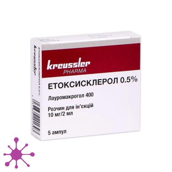 Етоксисклерол, 0,5% розчин д/ін., 10 мг/2 мл по 2 мл амп., №5