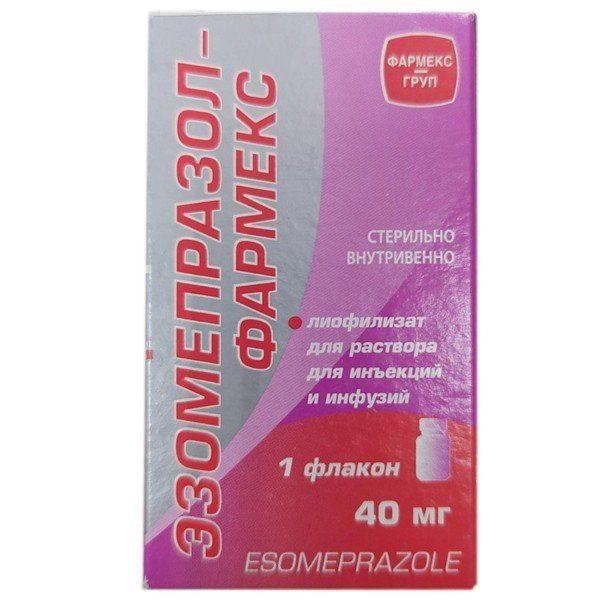 Езомепразол-Фармекс, ліофілізат для р-ну д/ін. и інф. по 40 мг у флак.