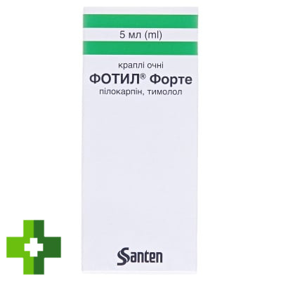 Підвищений внутрішньоочний тиск є основним фактором ризику в патогенезі глаукоматозних дефектів поля зору. Якщо пілокарпін і тимолол поєднуються в одному препараті, очікується посилена дія щодо зниження внутрішньоочного тиску, оскільки ці препарати мають різний механізм дії і впливають на різні тканини. Тимолол подовжує час знаходження пілокарпіну в оці, затримуючи його виведення. Краплі очні Фотил® Форте знижують як підвищений, так і нормальний внутрішньоочний тиск при різних видах глаукоми та очної гіпертензії. Вони містять сполуку, яка спричиняє міоз, тому також їх можна використовувати для зниження внутрішньоочного тиску при закритокутовій глаукомі.