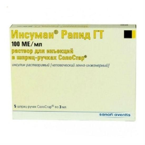 ИНСУМАН® РАПИД раствор д/ин., 100 МЕ/мл по 3 мл в картр. №5