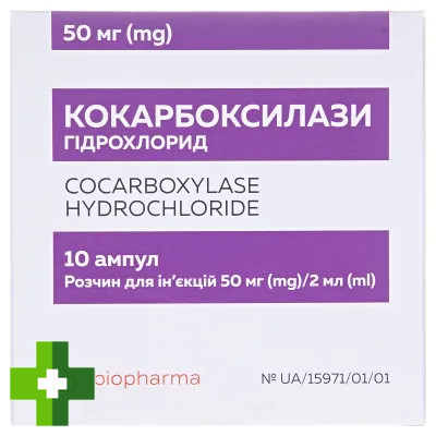 Кокарбоксилази гідрохлорид, р-н д/ін. 50мг/2мл амп., №10