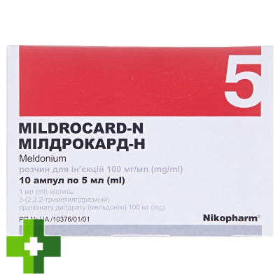 Мілдрокард-Н, р-н д/ин. 10 % амп. 5 мл, №10