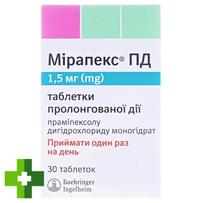 Мірапекс (mirapex) ПД, табл. прол./д. 1.5мг, №30