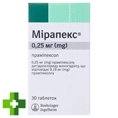 Мірапекс (mirapex), табл. 0,25 мг, №30
