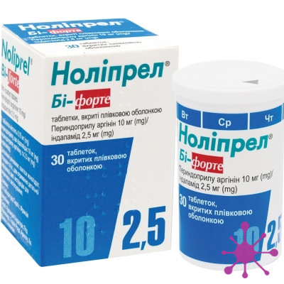 Ноліпрел® Бі-форте - це комбінація інгібітору АПФ периндоприлу аргініну та сульфонамідного діуретика індапаміду. Його фармакологічна дія зумовлена властивостями кожного компонента (периндоприлу та індапаміду) та їх адитивним синергізмом.
