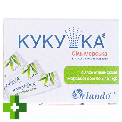 Сіль морська "Кукушка" містить 40 пакетиків-саше солі Середземного моря по 2,16 г.