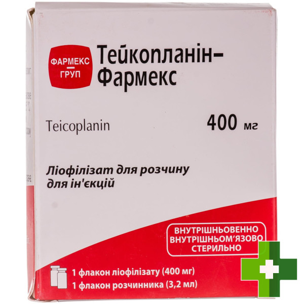 Тейкопланін-Фармекс, ліофілізат для р-ну д/ін. по 400 мг у флак. з р-ком