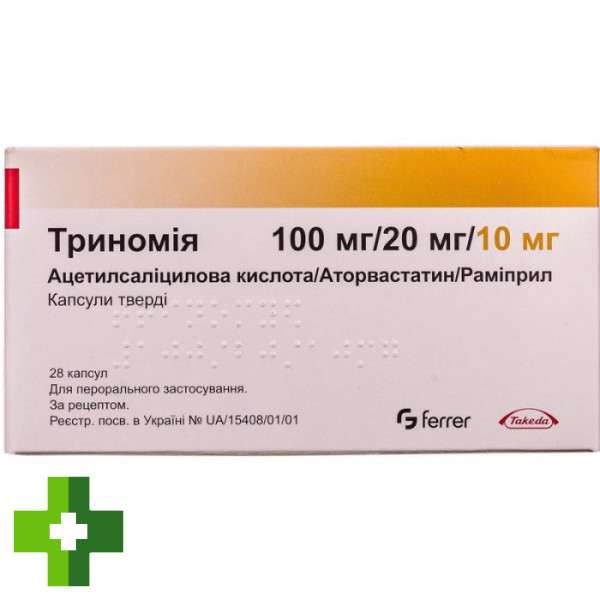 Триномія, капсули тв. по 100 мг/20 мг/10 мг, №28