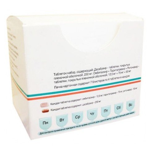 діючі речовини: омбітасвір, паритапревір, ритонавір;